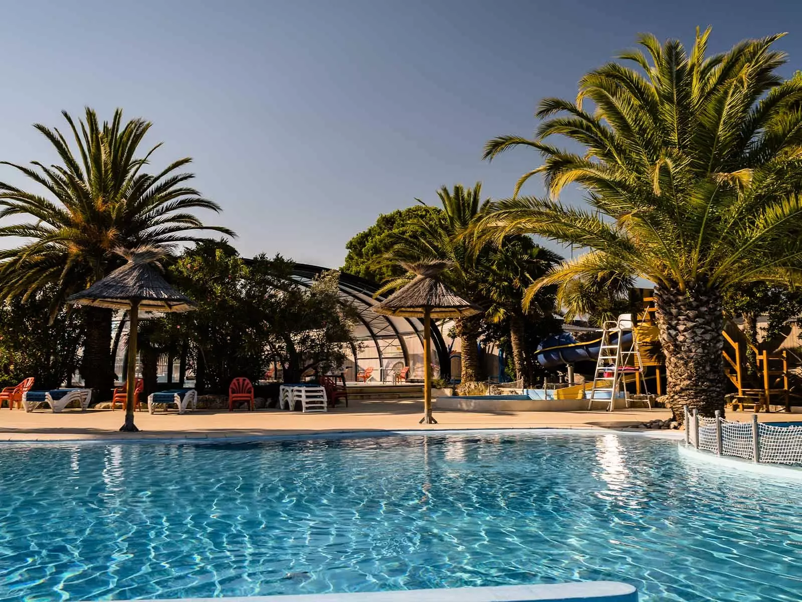 600 m2 medencék vízi komplexuma: A gyerekek élvezni fogják az úszómedence vad folyóját vagy a csúszda pályákat, a felnőttek a gyönyörű beltéri medence és a legkisebb a splashzone!