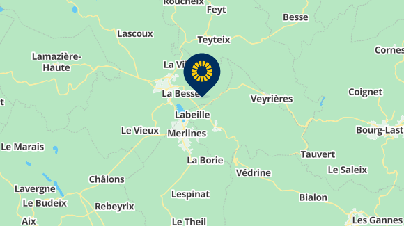 A89 autópálya kilépése 25 érkezik Párizsból A71-en keresztül, és kilép 24 jön Bordeaux vagy Limoges.